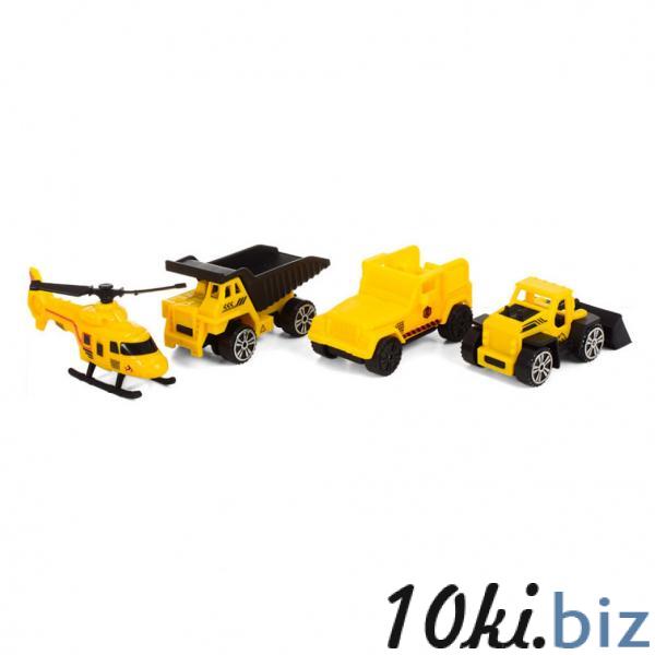 Набор содержит четыре машинки в виде строительной техники (Размер машинки 7 см.). Так же присутствует башенный кран и строительная площадка.